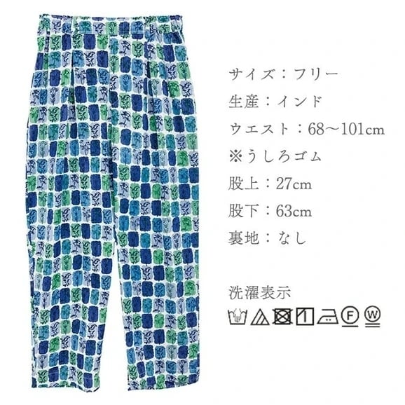 ウエスト68-101cm/股上26.5cm/股下63cm/ヒップ119.6cm