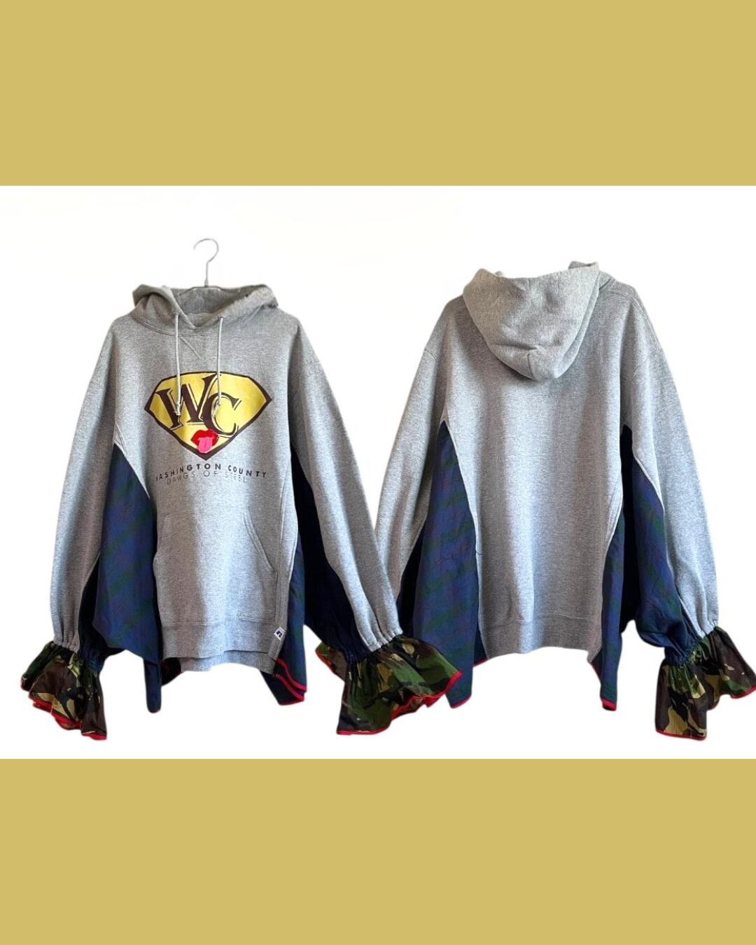 サイズ感 XL位のゆったりドルマンスリーブのリメイクスウェット。