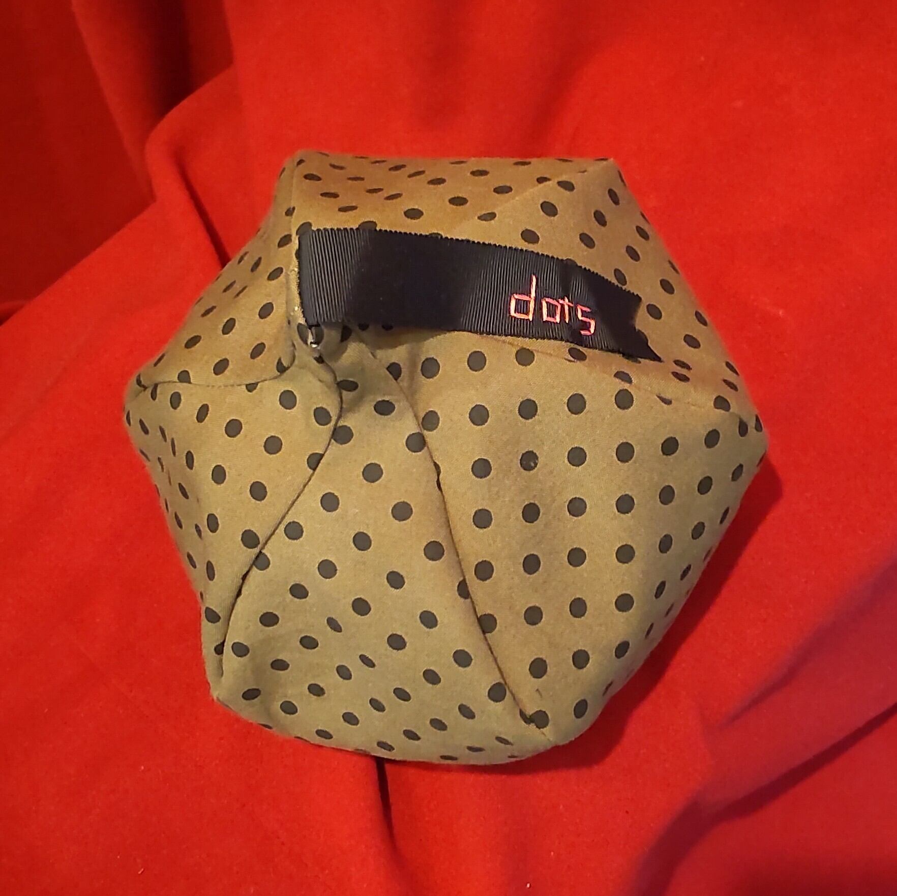カーキグリーン生地の上に、黒い水玉プリントが施されている生地に一目惚れして作ったキスチョコです♫